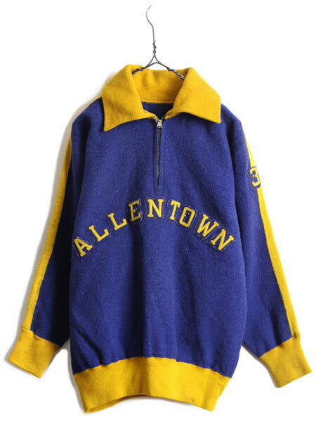 30s ★ スポルディング ハーフジップ 2トーン ウール スウェット 42 M / 古着 30年代 ビンテージ SPALDING タロン プルオーバー ジャケット