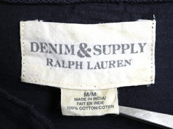 デニム&サプライ ラルフローレン ヘンリーネック 長袖 Tシャツ メンズ М / 古着 ポロ ロンT カットソー シングルステッチ スラブ織り 無地