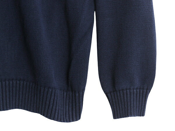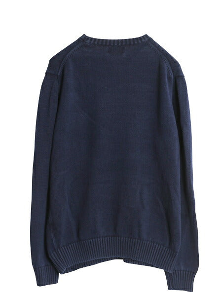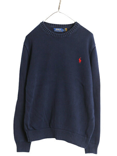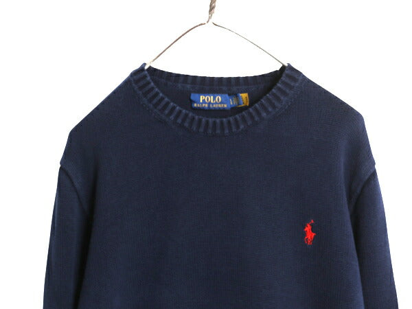 ポロ ラルフローレン コットン ニット セーター メンズ L 古着 長袖ニット ワンポイント クルーネック ミドルゲージ リブ編み シンプル 紺