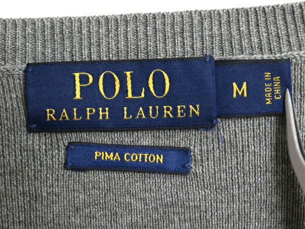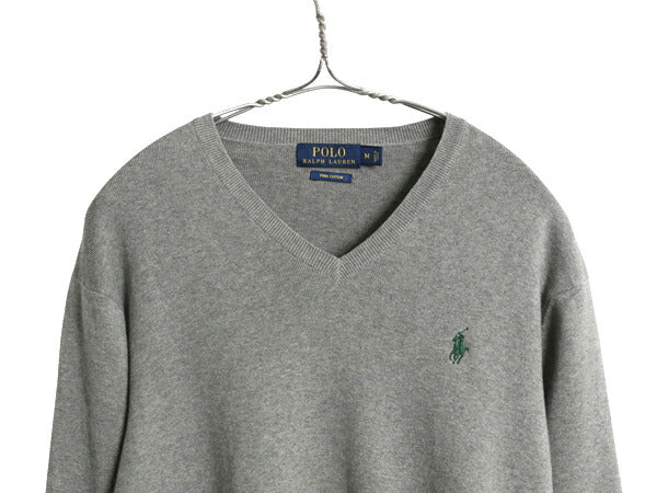 ポロ ラルフローレン Vネック ニット セーター メンズ М / 長袖ニット 高級 100% ピマ コットン ハイゲージ ストレッチ ワンポイント 薄手