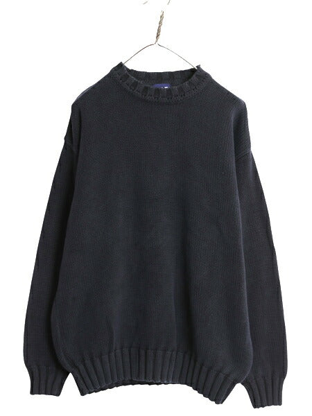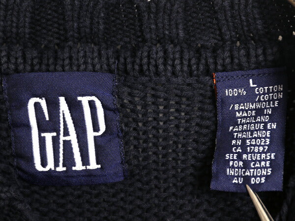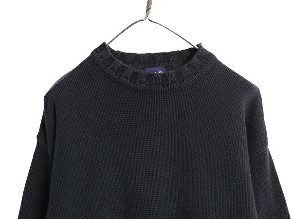 90s オールド ギャップ コットン ニット セーター メンズ L / 紺タグ 長袖ニット 無地 ヘビーウェイト モックネック ガンジー シンプル 紺