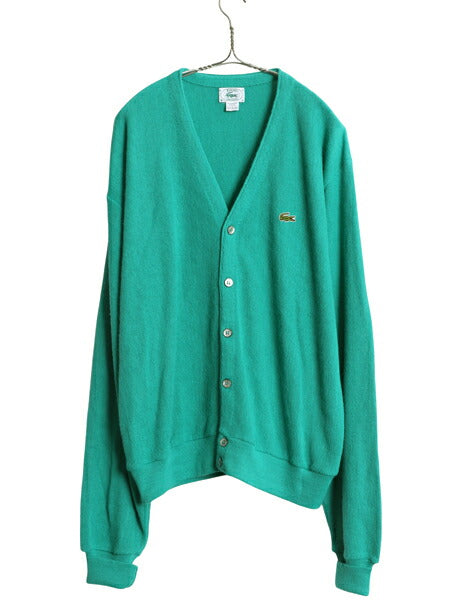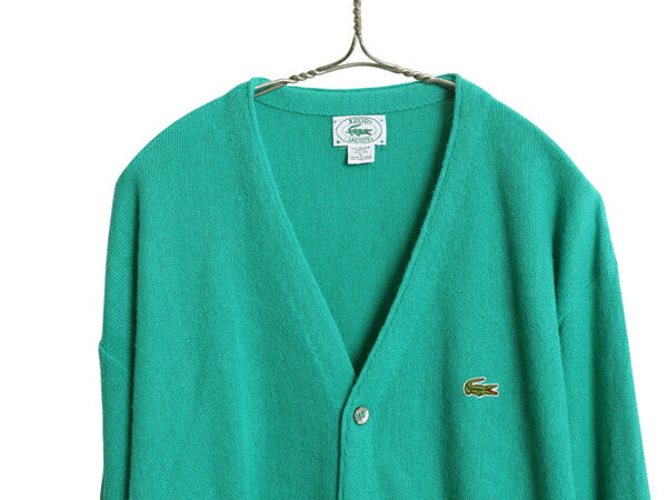 80s USA製 ラコステ アクリル ニット カーディガン メンズ レディース L 古着 ヴィンテージ 羽織り 前開き セーター ワンポイント グリーン