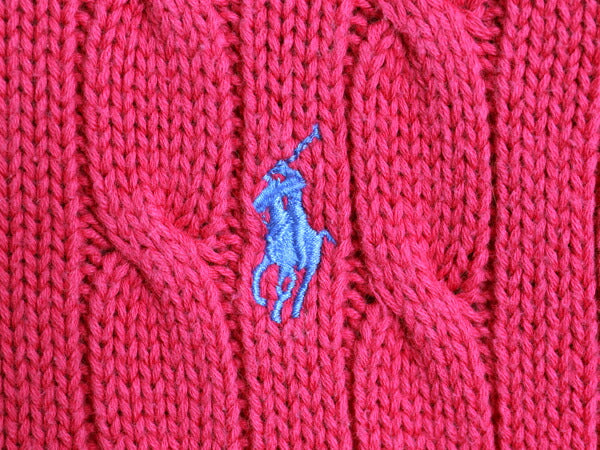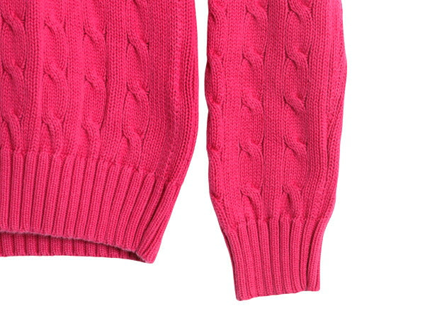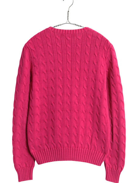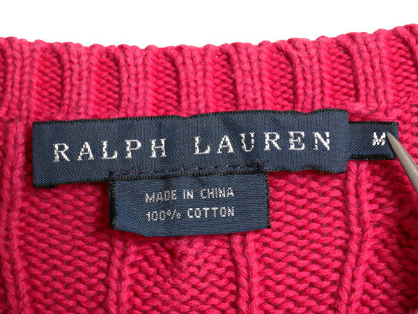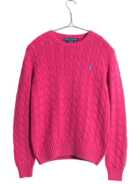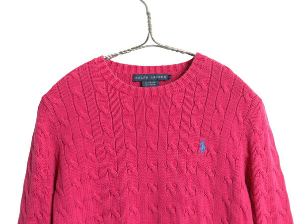 ラルフローレン コットン ケーブル ニットセーター レディース М / ポロ 長袖ニット ワンポイント クルーネック シンプル きれいめ ピンク