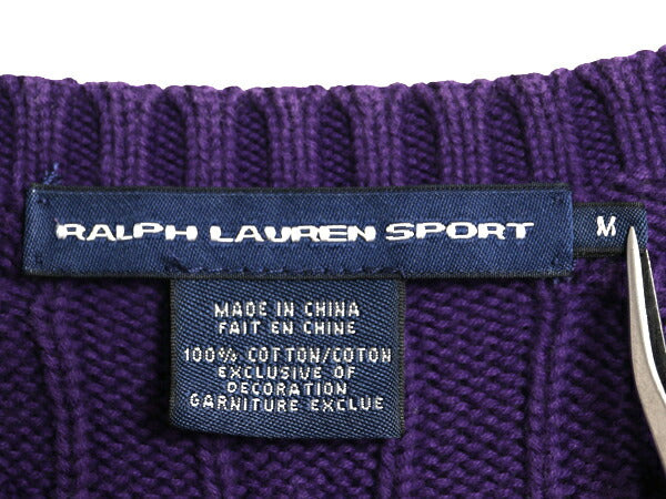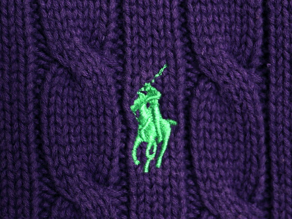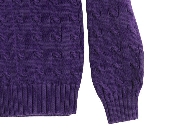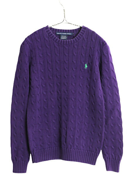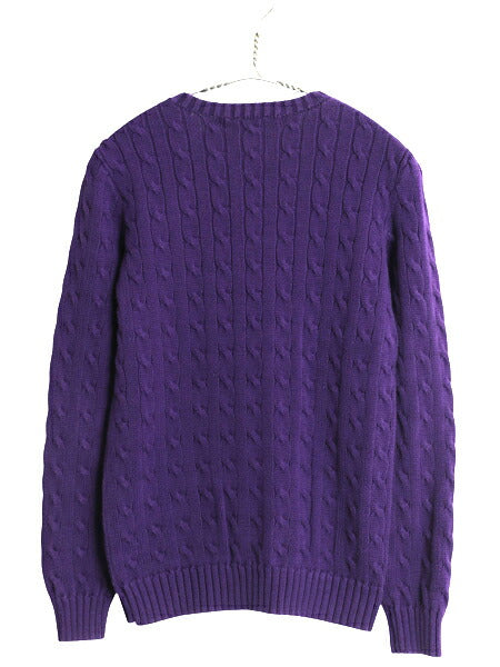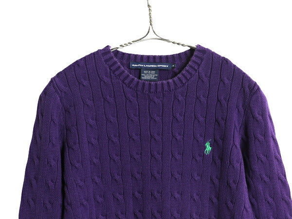 ラルフローレン コットン ケーブル ニット セーター レディース М 古着 ポロ スポーツ 長袖ニット ワンポイント クルーネック シンプル 紫