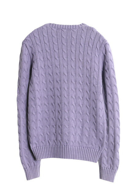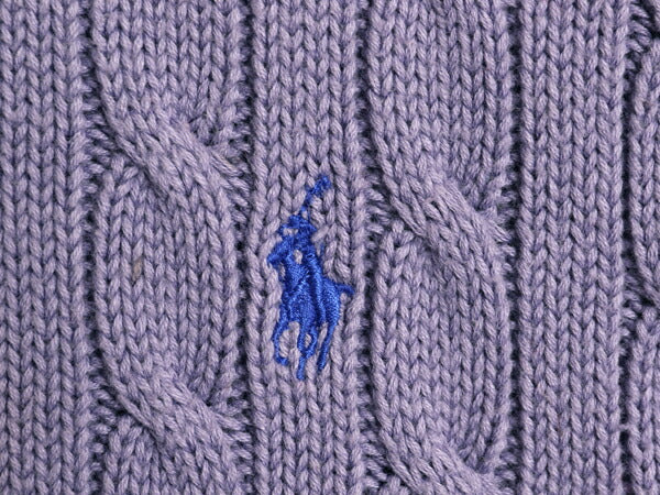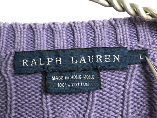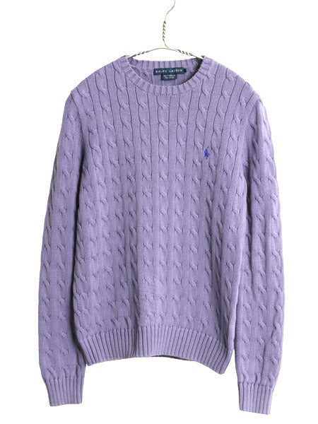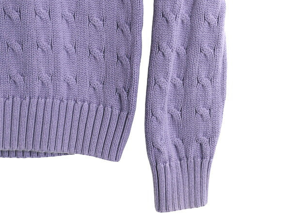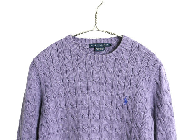 ラルフローレン コットン ケーブル ニットセーター レディース L ポロ 長袖ニット ワンポイント クルーネック シンプル きれいめ パープル