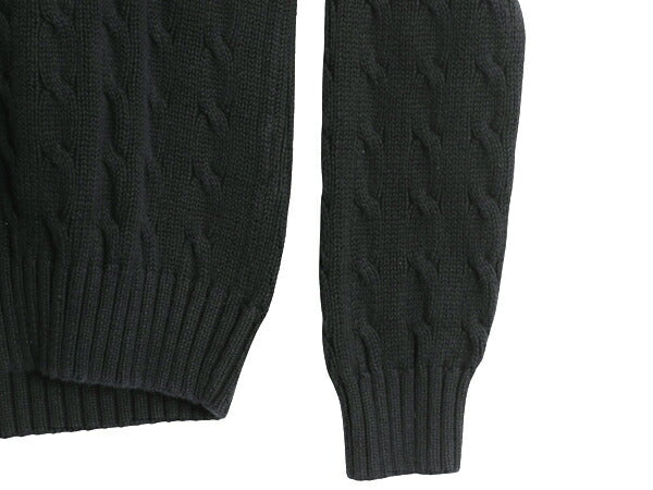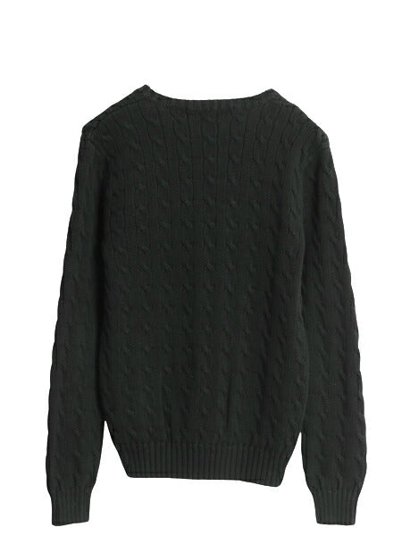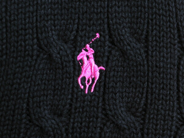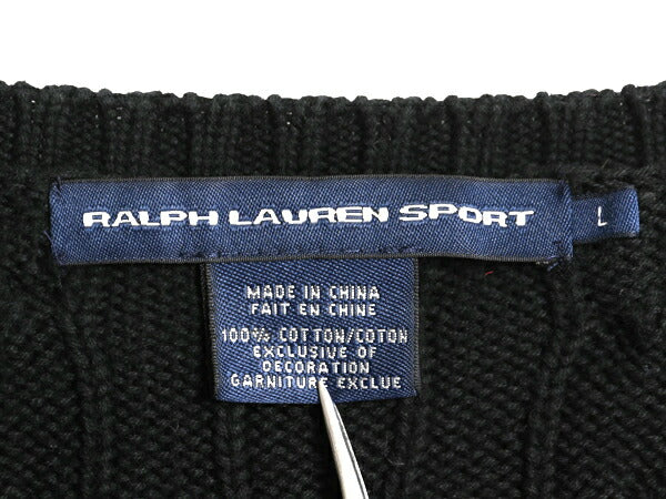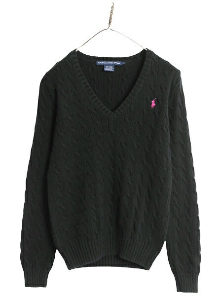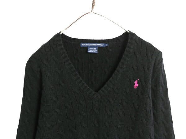 ラルフローレン コットン ケーブル ニット セーター レディース L / ポロ スポーツ 長袖ニット Vネック ワンポイント シンプル きれいめ 黒