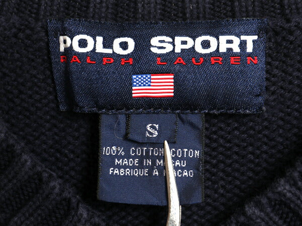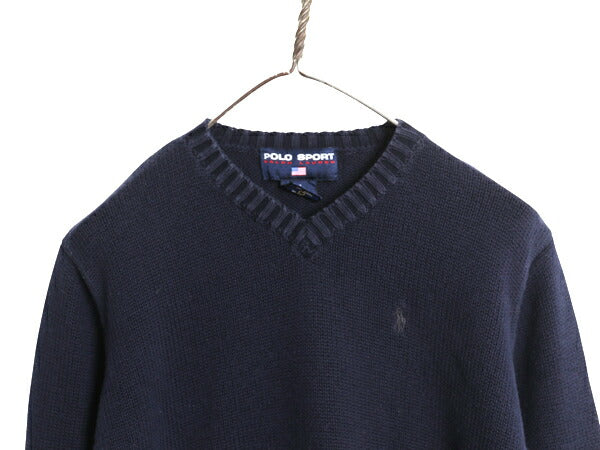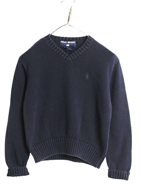 90s ポロスポーツ ラルフローレン コットン ニット セーター レディース S / オールド ポロ 長袖ニット Vネック ワンポイント クルーネック