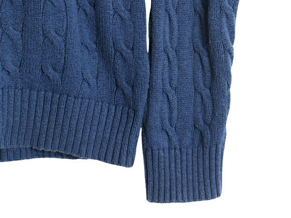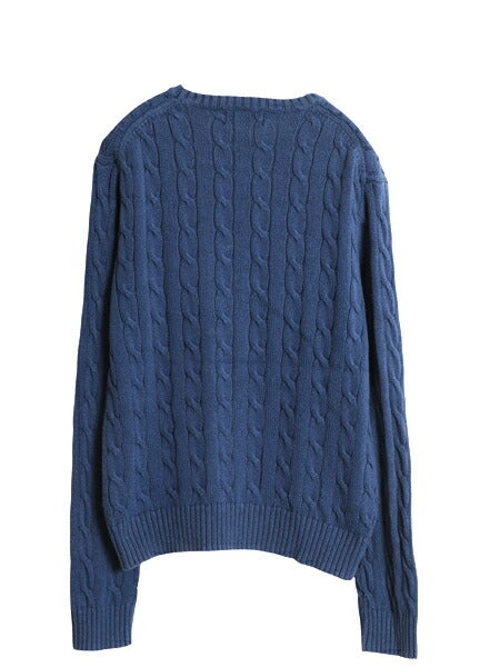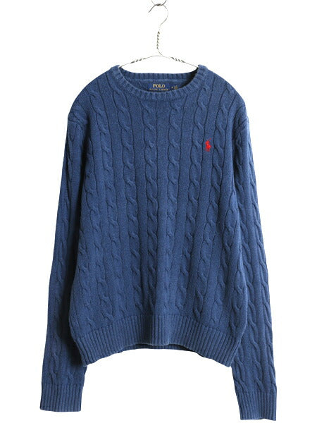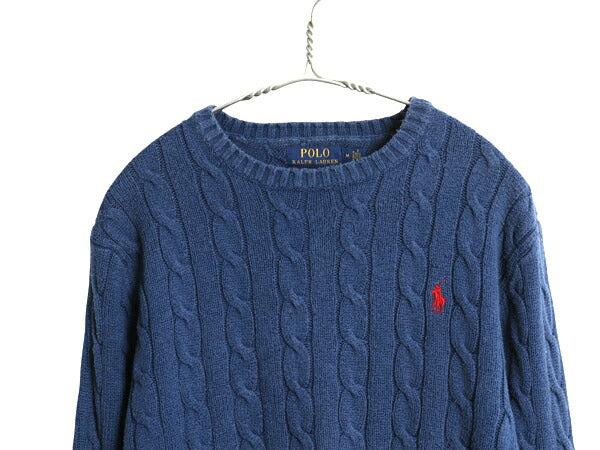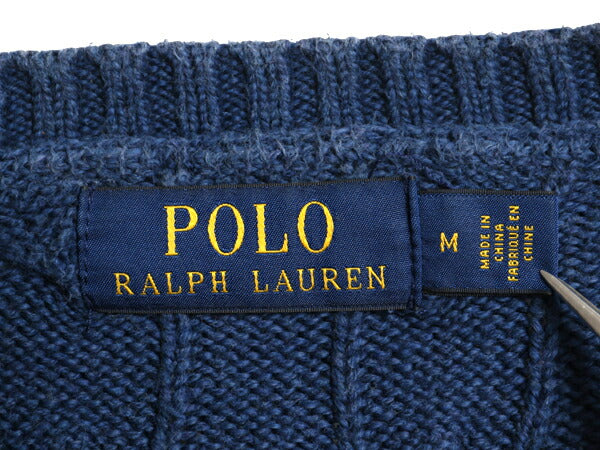 ポロ ラルフローレン コットン ケーブル ニット セーター メンズ М 古着 長袖ニット ワンポイント クルーネック シンプル きれいめ ブルー