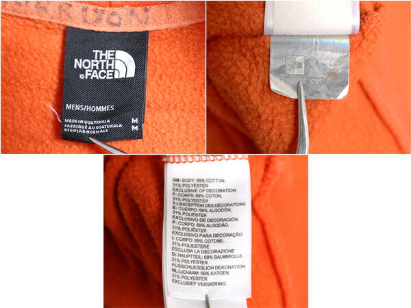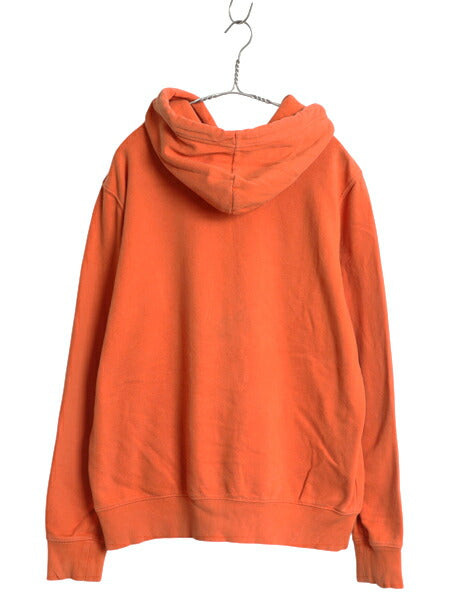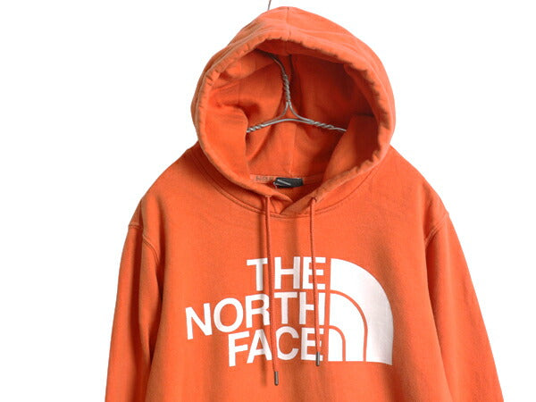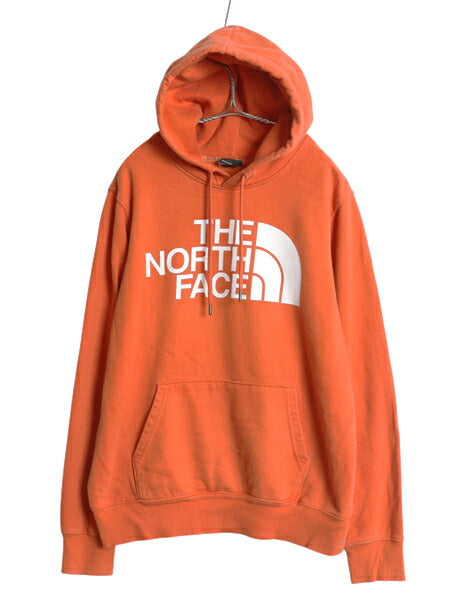 ノースフェイス プリント スウェット フード パーカー メンズ М 古着 裏起毛 プルオーバー トレーナー アウトドア シンプル 薄手 オレンジ