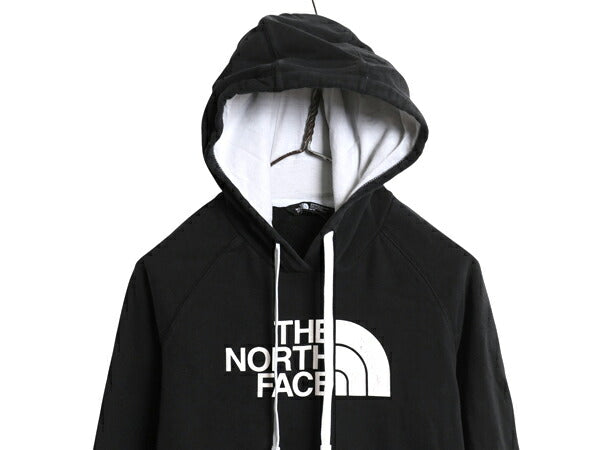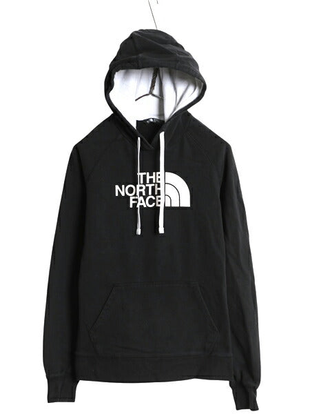 ノースフェイス プリント スウェット フード パーカー レディース М / 古着 アウトドア トレーナー プルオーバー 裏起毛 ツートン 黒 白