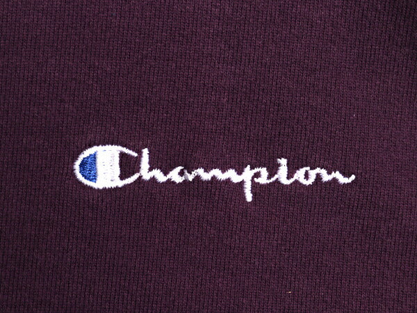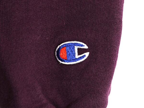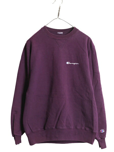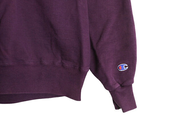 90s チャンピオン ワンポイント スウェット メンズ レディース М 程/ オールド 裏起毛 トレーナー 前V スクリプト ロゴ刺繍 シンプル 紫