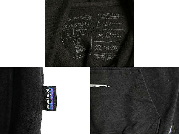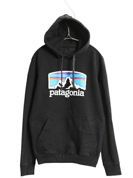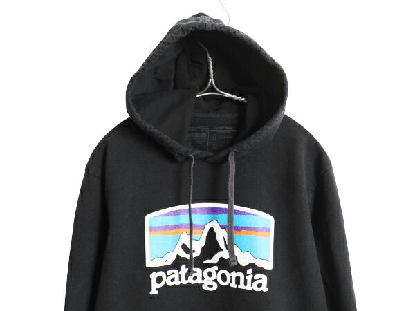 パタゴニア プリント スウェット フード パーカー メンズ S / 古着 20年製トレーナー プルオーバー ストレッチ アウトドア 裏起毛 ブラック