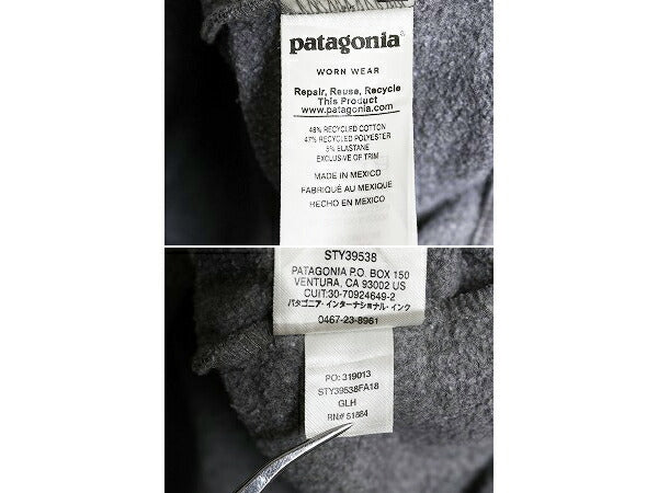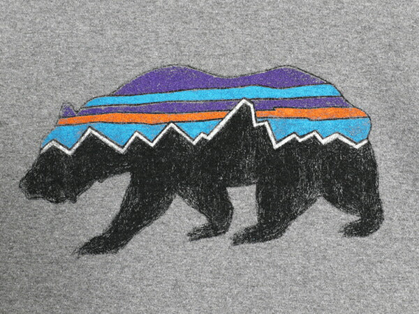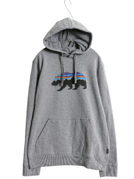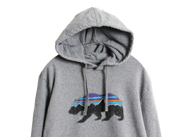 パタゴニア プリント スウェット フード パーカー メンズ M 古着 18年製 トレーナー プルオーバー ストレッチ 裏起毛 フィッツロイ ベア 灰