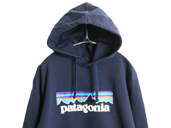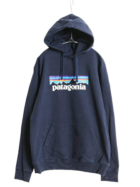 パタゴニア プリント スウェット フード パーカー メンズ L 20年製 トレーナー プルオーバー ストレッチ ヘビーウェイト シンプル ネイビー