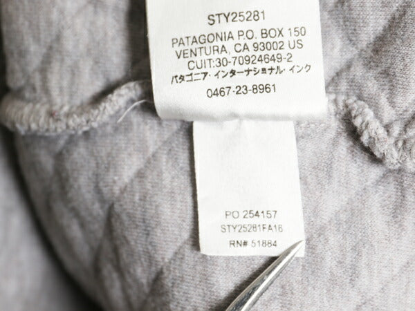 パタゴニア オーガニック コットン キルト スナップT レディース L 16年製 プルオーバー キルティング ジャケット ブルゾン ジャンパー 灰