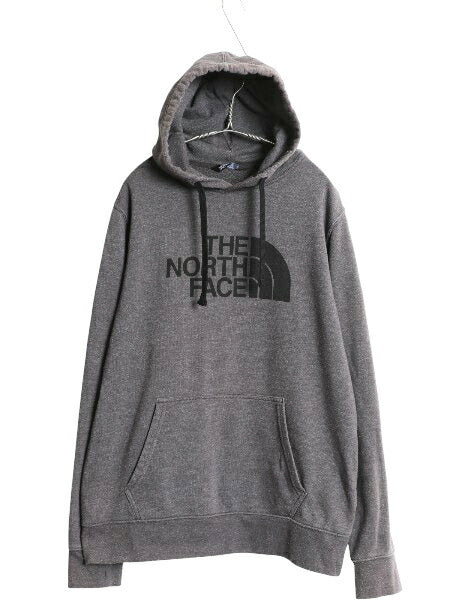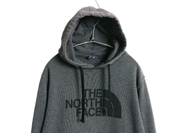 ノースフェイス プリント スウェット フード パーカー メンズ L アウトドア トレーナー プルオーバー 裏起毛 薄手 シンプル ゆったり 濃灰
