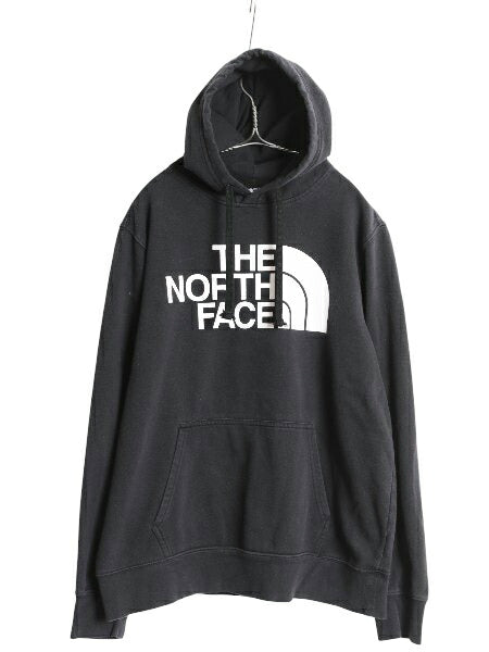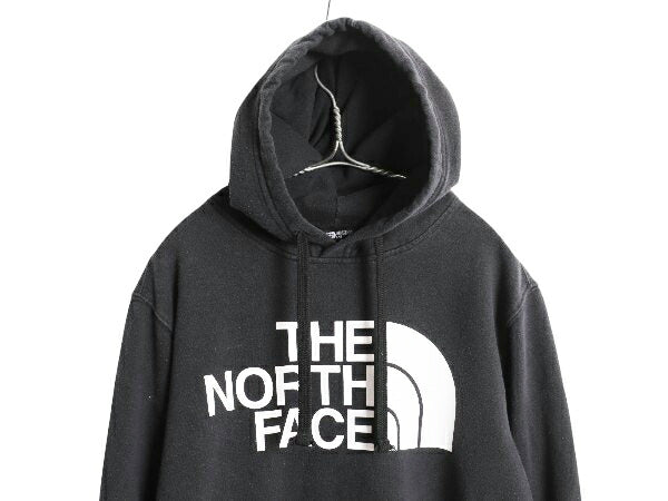ノースフェイス プリント スウェット フード パーカー メンズ L 古着 プルオーバー 裏起毛 トレーナー アウトドア 薄手 ブラック シンプル