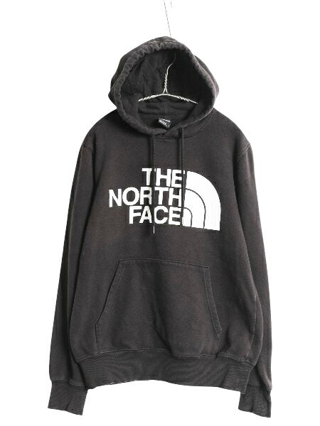 ノースフェイス プリント スウェット フード パーカー メンズ S / 古着 トレーナー プルオーバー 裏起毛 アウトドア モノトーン ブラック