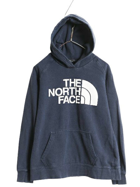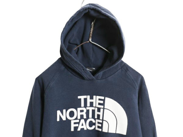 ノースフェイス プリント スウェット フード パーカー レディース М トレーナー プルオーバー 裏起毛 アウトドア 薄手 シンプル ネイビー