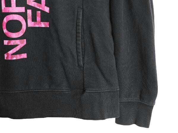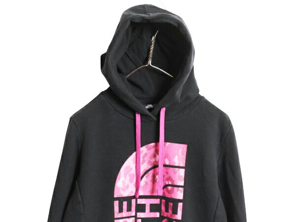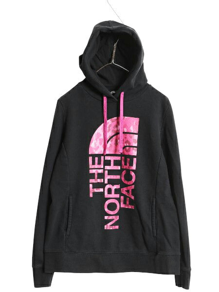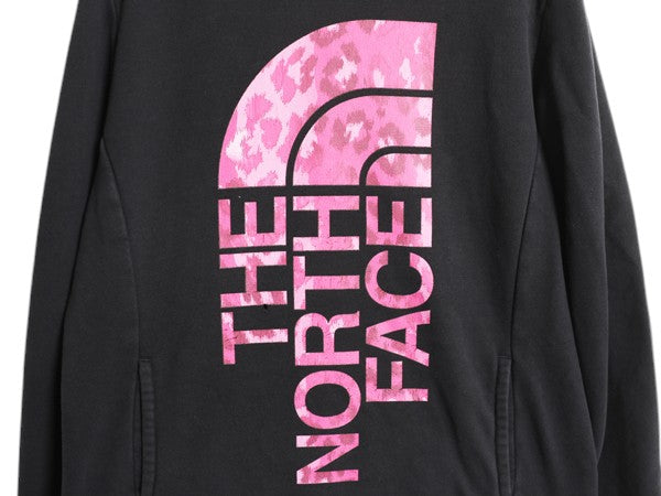 ノースフェイス プリント スウェット フード パーカー レディース L / 古着 裏起毛 プルオーバー トレーナー アウトドア ヒョウ柄 ブラック