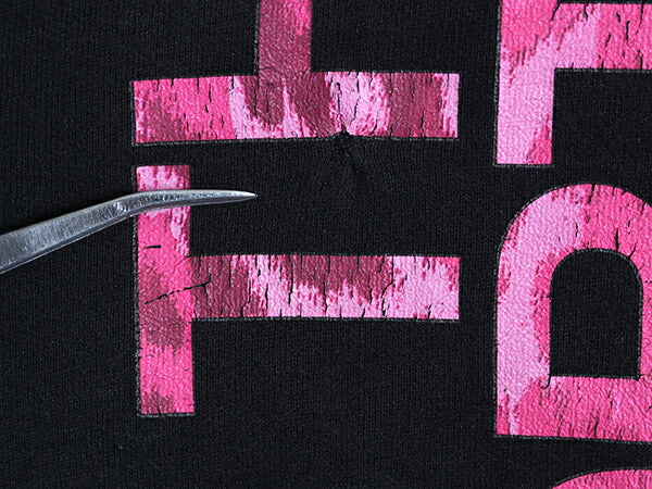 ブラックボディにピンクのヒョウ柄のビッグロゴプリント