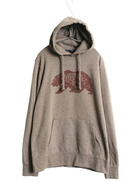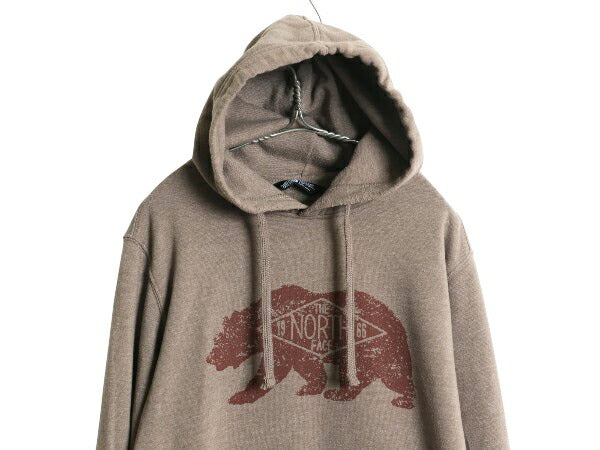 ノースフェイス プリント スウェット フード パーカー メンズ L / トレーナー プルオーバー 裏起毛 ベア イラスト アウトドア グラフィック