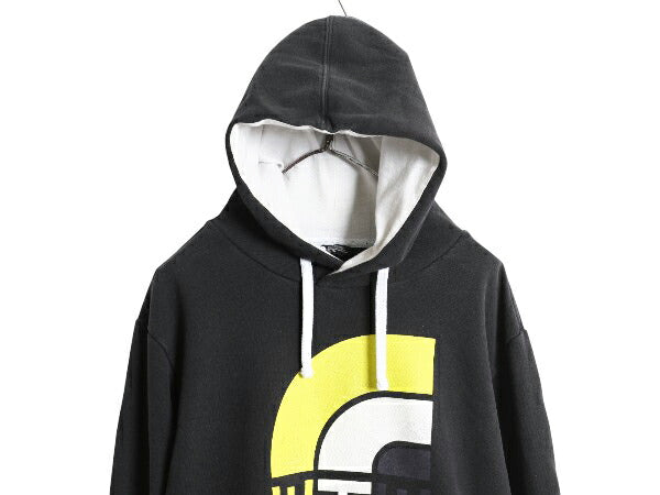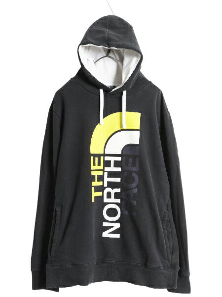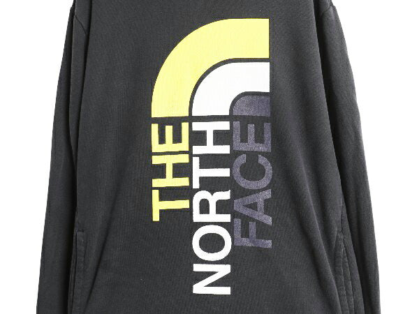 ノースフェイス プリント スウェット フード パーカー メンズ XL / 古着 トレーナー プルオーバー 裏起毛 ツートン ブラック 大きいサイズ