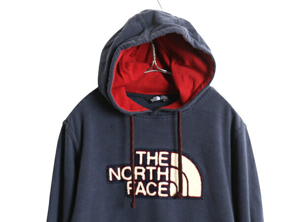 ノースフェイス スウェット フード パーカー メンズ M / 古着 裏起毛 プルオーバー トレーナー サガラ ワッペン 刺繍 アウトドア ツートン