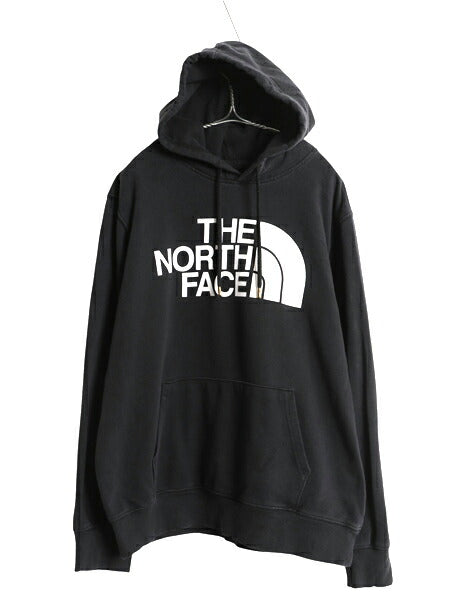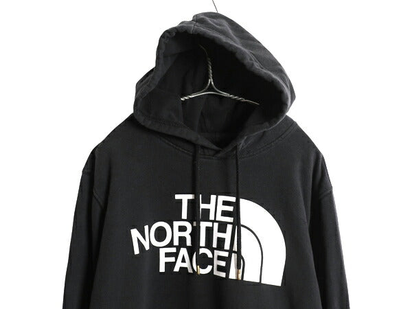 ノースフェイス プリント スウェット フード パーカー メンズ L 古着 裏起毛 プルオーバー トレーナー アウトドア シンプル 薄手 ブラック