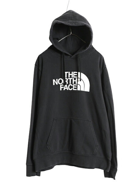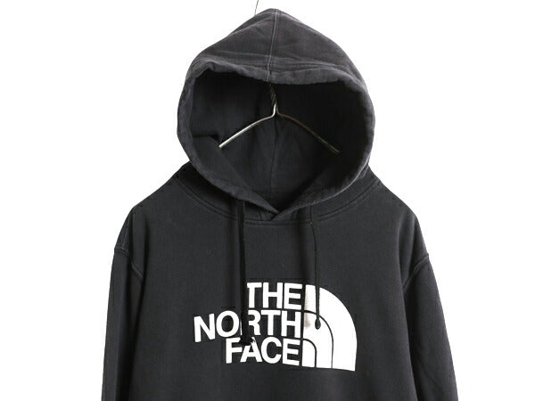 ノースフェイス プリント スウェット フード パーカー メンズ М 程/ 裏起毛 プルオーバー トレーナー アウトドア シンプル 薄手 ブラック