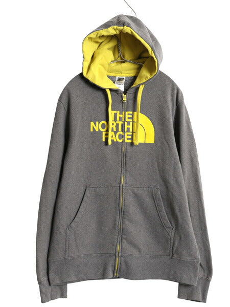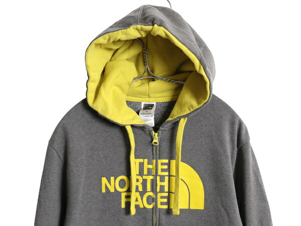 ノースフェイス フルジップ プリント スウェット フード パーカー メンズ M / 古着 アウトドア 裏起毛 トレーナー シンプル ツートン 灰 黄