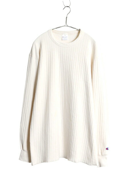 90s USA製 チャンピオン 長袖 Tシャツ メンズ L / オールド リブ編み 針抜き ロンT ロングスリーブ カットソー ストレッチ 無地 ナチュラル