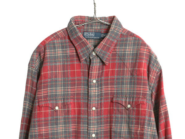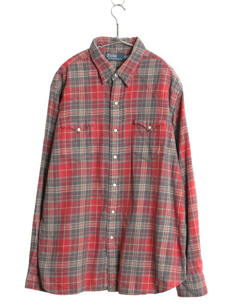 00s ポロ ラルフローレン チェック フランネル ウエスタン シャツ メンズ XL / オールド 長袖シャツ ネルシャツ 大きいサイズ マルチカラー