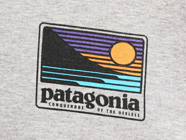 パタゴニア プリント スウェット メンズ M 17年製 アウトドア トレーナー ストレッチ 裏起毛 ワンポイント グラフィック シンプル 薄手 灰