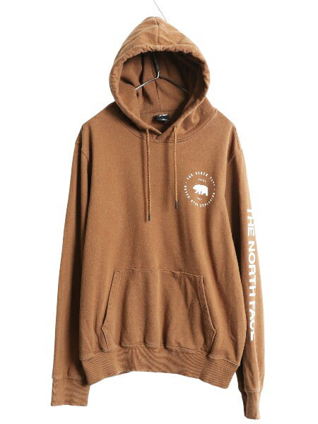 ノースフェイス ベア イラスト プリント スウェット フード パーカー メンズ М 裏起毛 プルオーバー トレーナー グラフィック 袖プリント