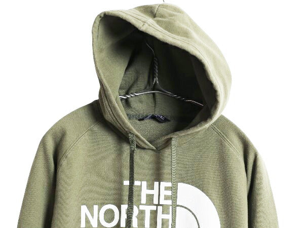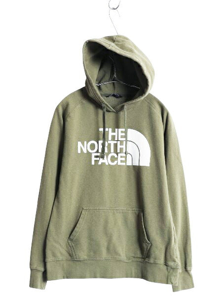 ノースフェイス プリント スウェット フード パーカー レディース М 古着 裏起毛 プルオーバー トレーナー アウトドア シンプル グリーン