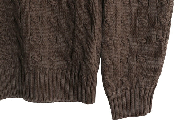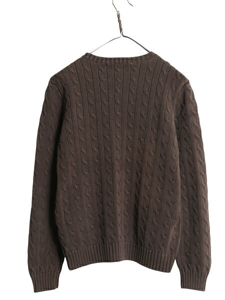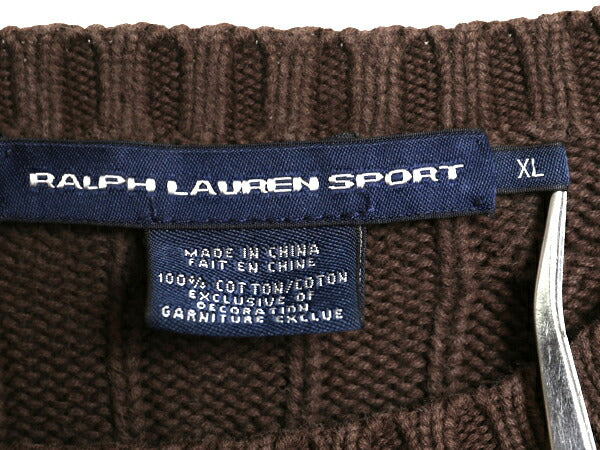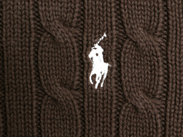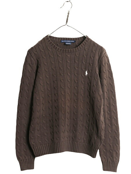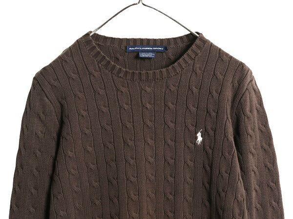 ラルフローレン コットン ケーブル ニット セーター レディース XL ポロ スポーツ 長袖ニット ワンポイント クルーネック 大きいサイズ 茶