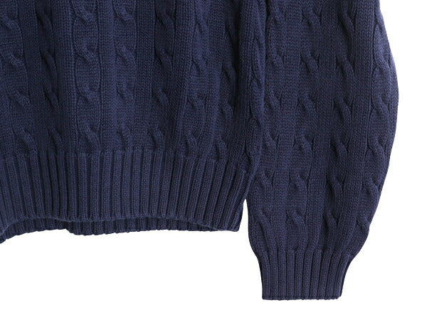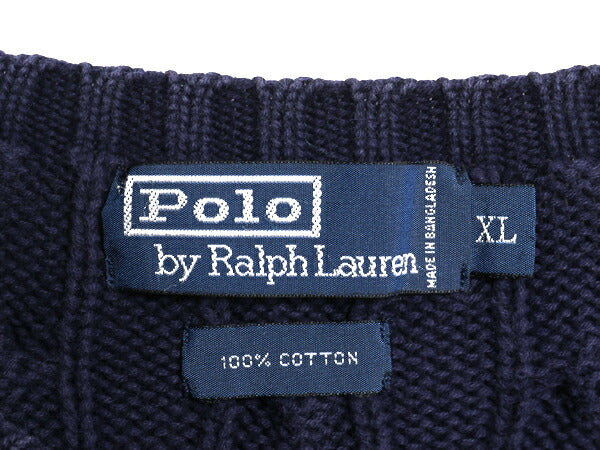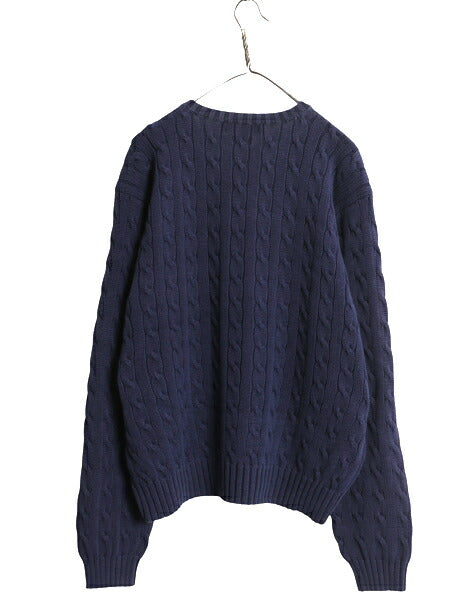 00s ポロ ラルフローレン コットン ケーブル ニット セーター メンズ XL オールド 長袖ニット ワンポイント クルーネック 大きいサイズ 紺