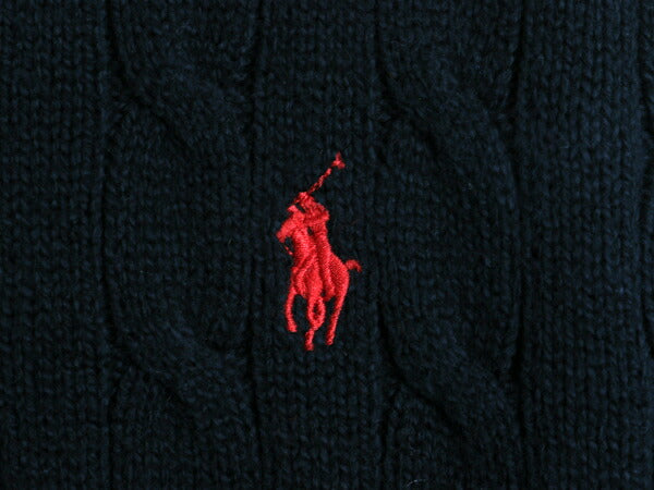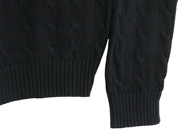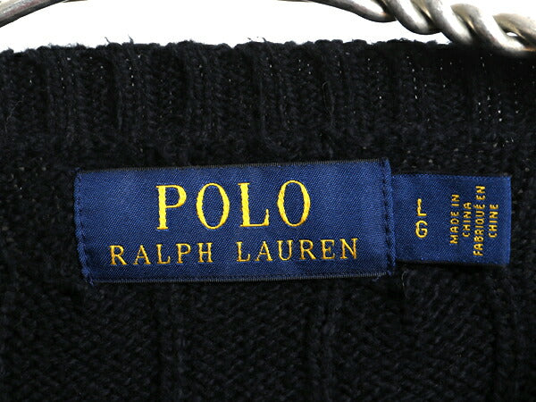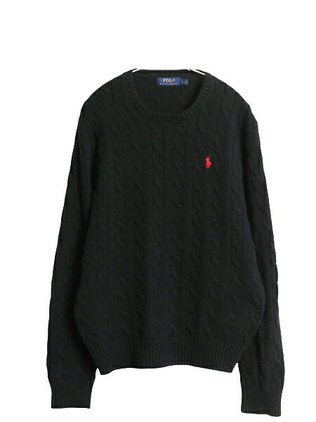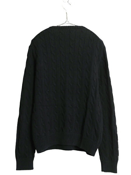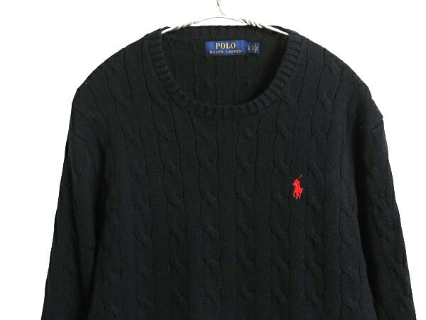 ポロ ラルフローレン コットン ケーブル ニット セーター メンズ L / 長袖ニット ワンポイント クルーネック シンプル ブラック カジュアル