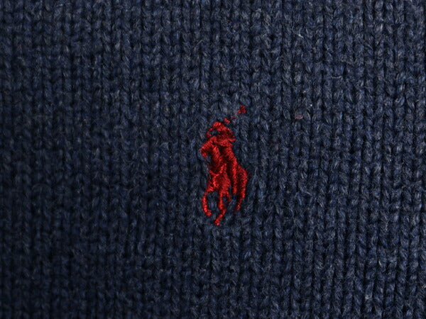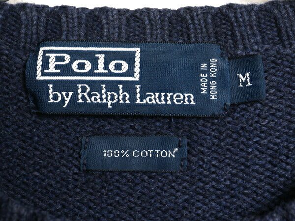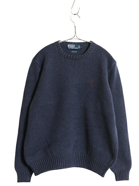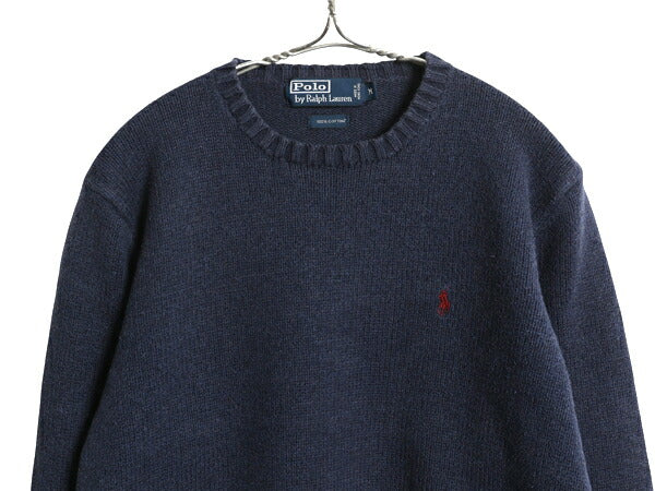 90s ポロ ラルフローレン コットン ニット セーター レディース М メンズ S 程 オールド ワンポイント クルーネック シンプル きれいめ 紺