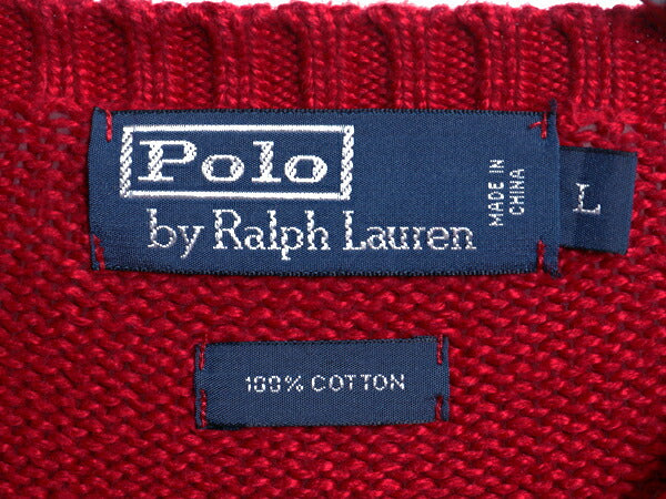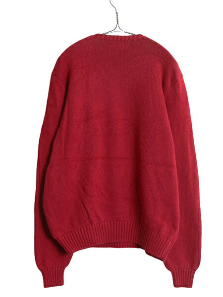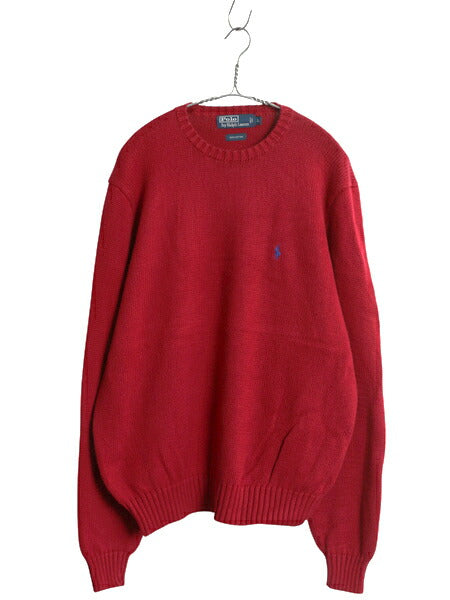 00s ポロ ラルフローレン コットン ニット セーター メンズ L 古着 オールド 長袖ニット ワンポイント クルーネック シンプル きれいめ 赤