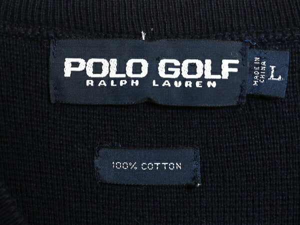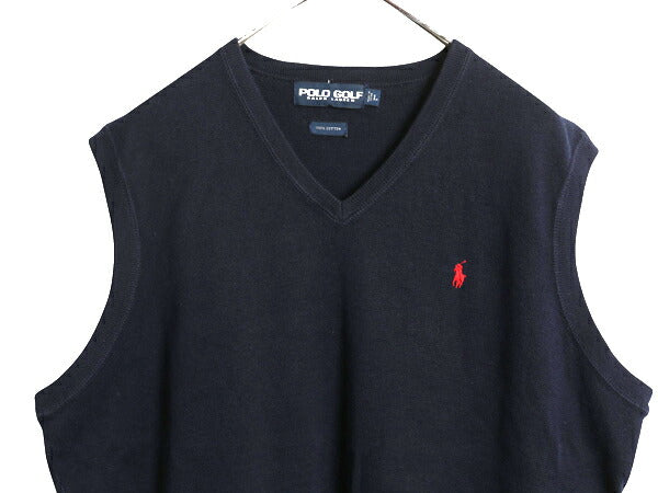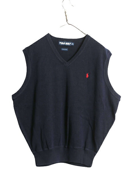 90s ポロゴルフ ラルフローレン コットン ニット ベスト メンズ L / オールド ポロ セーター Vネック 重ね着 ワンポイント プルオーバー 紺