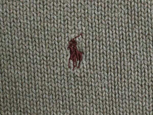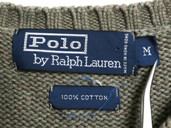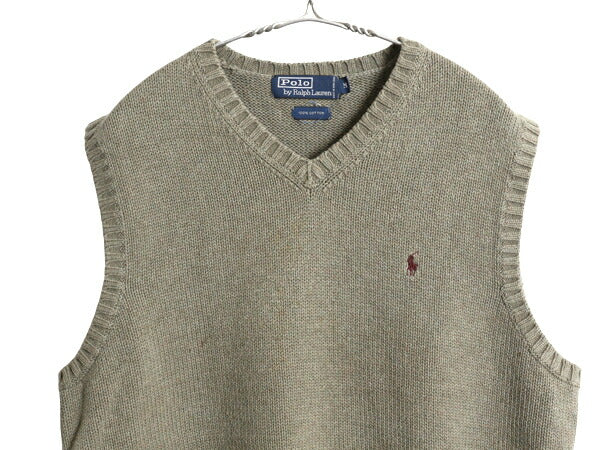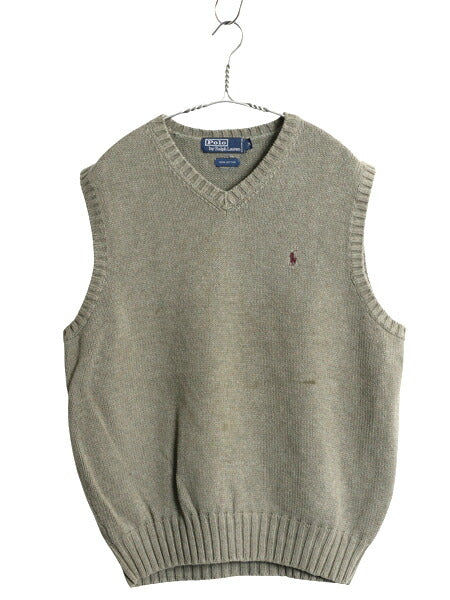 90s ポロ ラルフローレン Vネック コットン ニット ベスト メンズ М / 古着 オールド セーター 重ね着 ワンポイント プルオーバー カーキ
