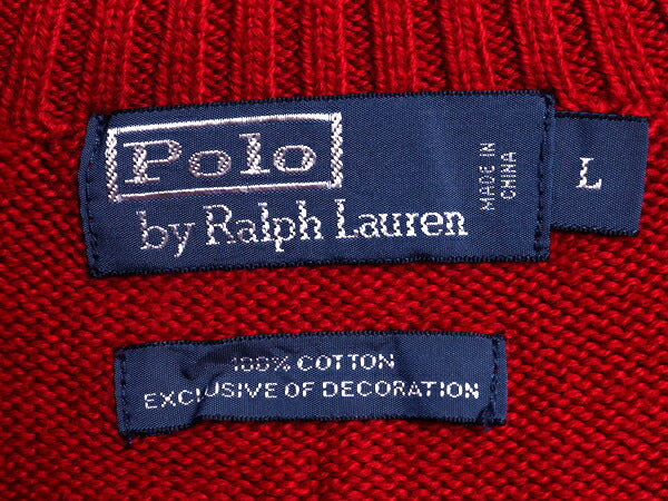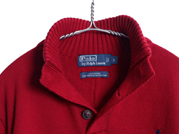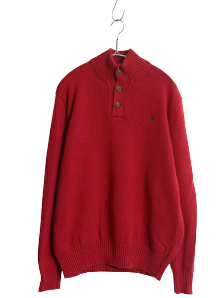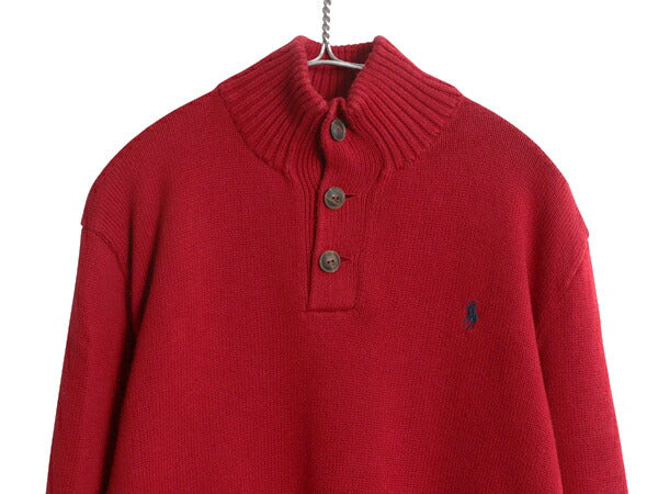 00s ポロ ラルフローレン ハイネック コットン ニット セーター メンズ L オールド 長袖ニット ワンポイント ヘンリーネック シンプル 赤