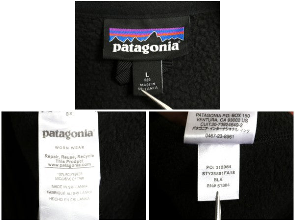 パタゴニア ベターセーター ベスト メンズ L 古着 18年製 フリース セーター 前開き フルジップ アウトドア 重ね着 ワンポイント ブラック