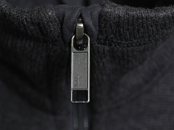 セーターのような見た目とポリエステルの丈夫さを兼ね備え