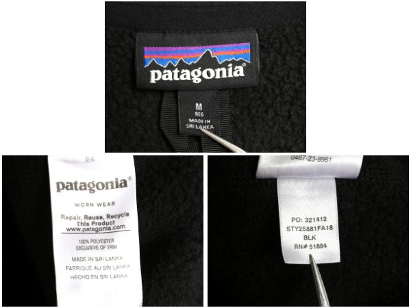 パタゴニア ベターセーター ベスト メンズ М 古着 18年製 フリース セーター 前開き フルジップ アウトドア 重ね着 ワンポイント ブラック