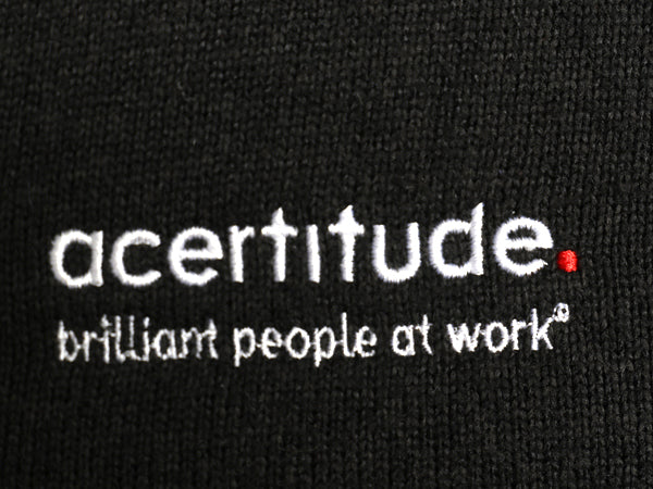 右胸に企業ロゴ刺繍、左胸にブランドロゴ刺繍
