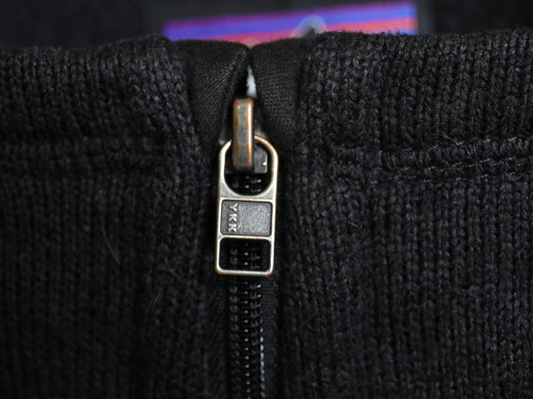 セーターのような見た目とポリエステルの丈夫さを兼ね備え