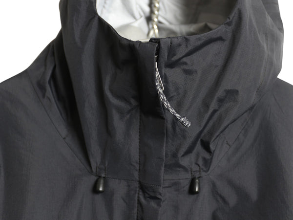 裾とフードには防風効果と、体温を逃がさない為のドローコード付き